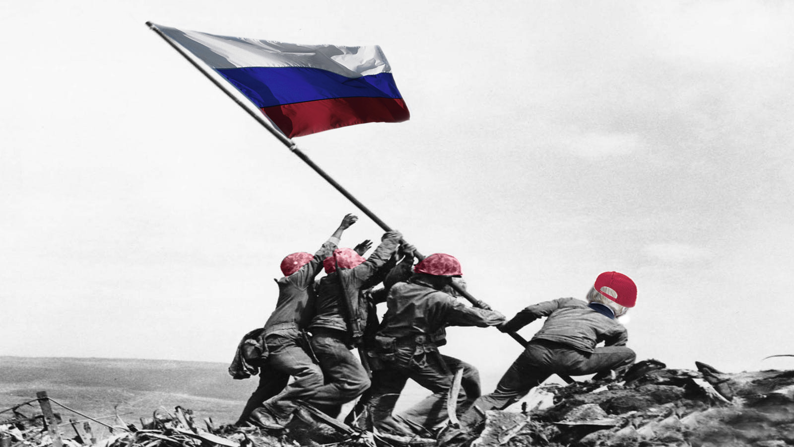In Joe Rosenthal’s “Raising the Flag on Iwo Jima,” I changed the American flag to a Russian one. I also changed the front soldier’s head to Trump’s, put a MAGA hat on him so he’d be distinguishable from the back and also changed the other soldiers’ hats to red to symbolize Trump’s team and followers.