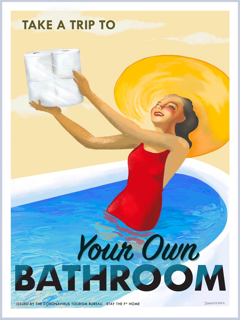 One piece of media that resonated with me was a tweet I found by artist Jennifer Baer about travel posters she had designed to encourage people to social distance and stay at home. This resonated with me because I’ve also been trying to stay creative and use art as a way to process what’s going on and because this was something happy and fun to look at and gave some relief.